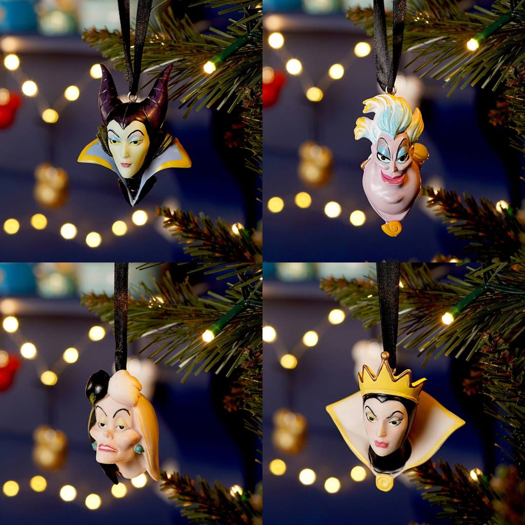 Celebrate the dark side of Disney magic with this Disney Villains Set of Four Resin Hanging Decorations, featuring Maleficent, Evil Queen, Cruella de Vil, and Ursula. Each piece captures the essence of these iconic characters in stunning hand-painted detail, making them the perfect addition to any Halloween display or Christmas tree for fans of Disney’s most unforgettable villains.