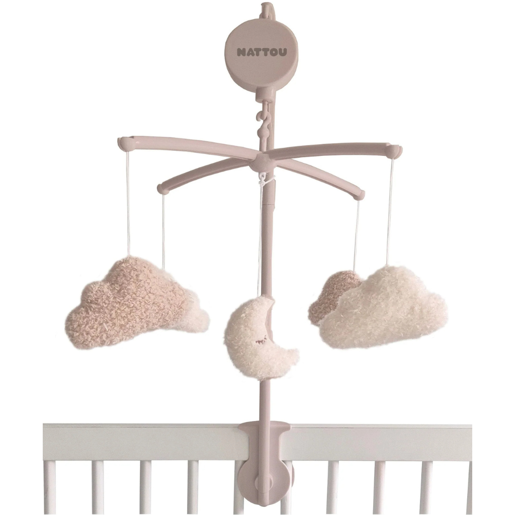 Create a calming bedtime routine with the Nattou Teddy Moon & Cloud Musical Mobile. Designed to soothe and delight, this enchanting mobile gently rotates soft plush moons and clouds while playing the classic “Le-La-Lu” lullaby. The gentle movement and melody help to settle little ones, while also encouraging early auditory awareness.