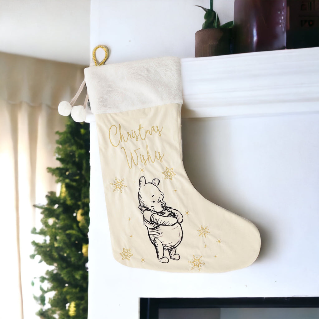 Disney Winnie the Pooh White & Gold Velveteen Plush Stocking