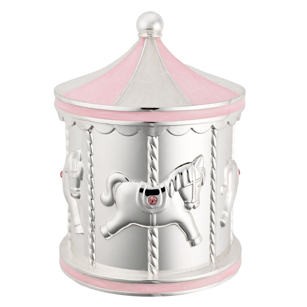 Bambino Silver Plated Pink Solid Carousel Money Box with Diamante Detailing