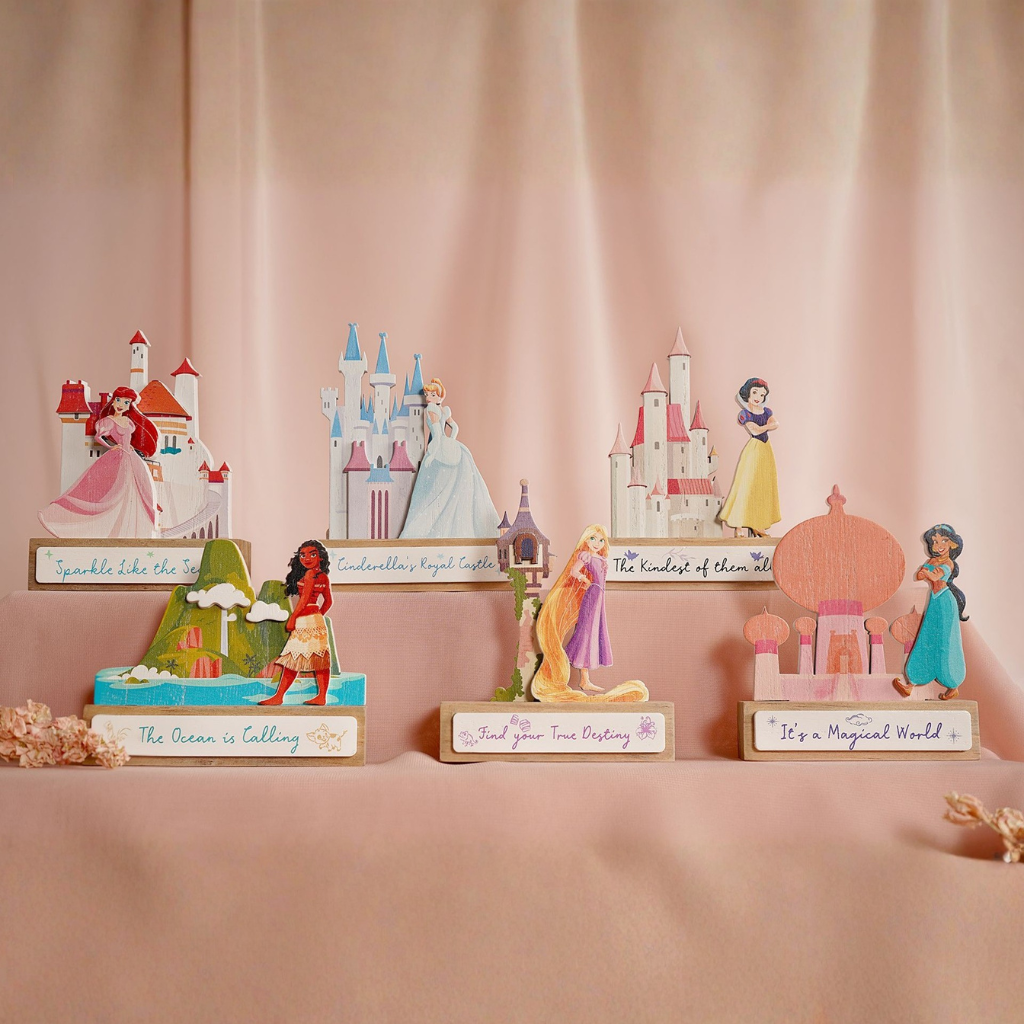 The Disney Pastel Princess ‘Cinderella’s Royal Castle’ Mini Castle Plaque is a charming decorative keepsake designed to add a touch of fairytale magic to a nursery shelf, bookcase, or little reading corner. Featuring a beautifully illustrated Cinderella standing in front of her pastel-toned royal castle, this freestanding plaque is finished with the title “Cinderella’s Royal Castle” along the base.