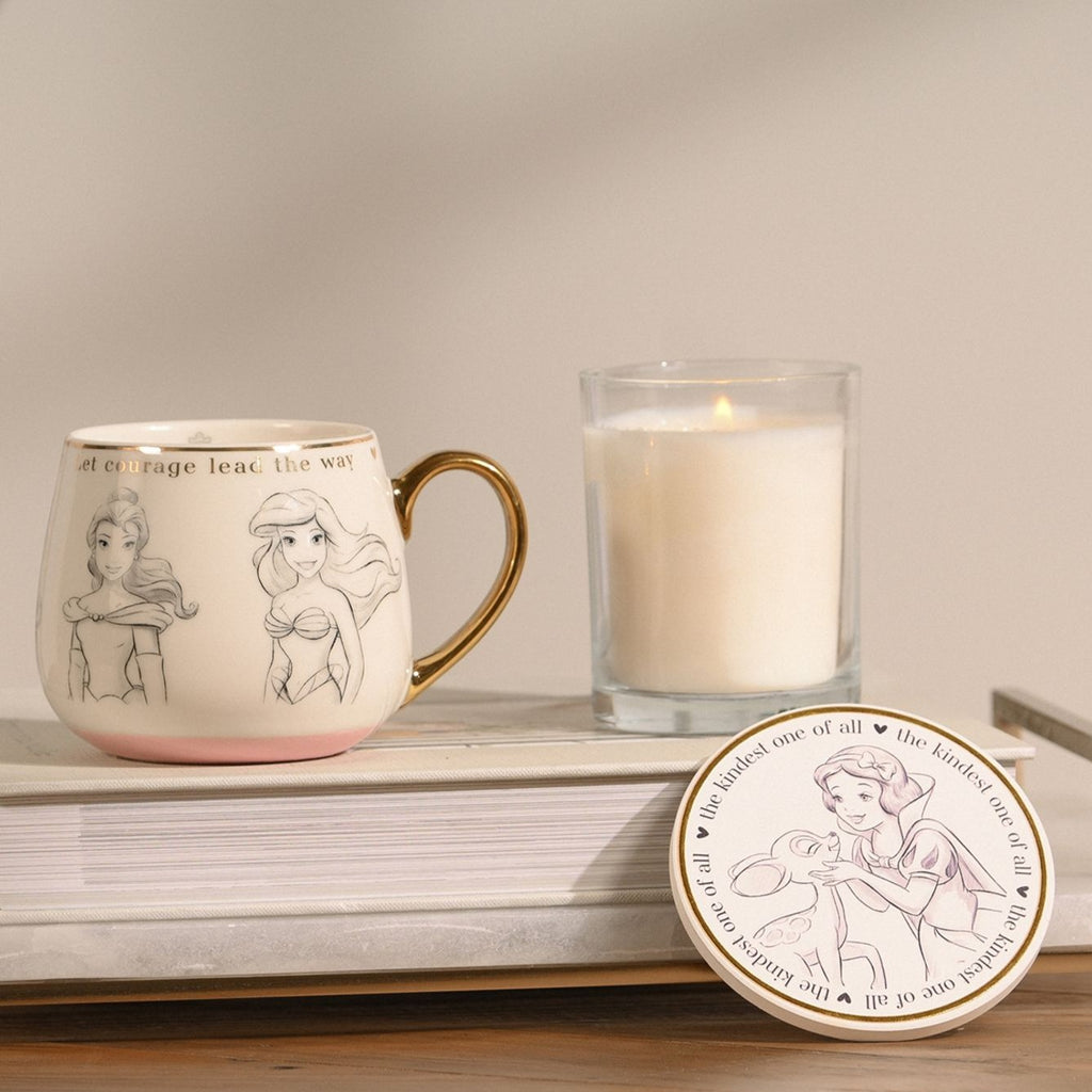 Bring a little Disney Princess magic to your morning brew with this elegant Disney Classic Collectable mug. Featuring beautifully sketched illustrations of beloved Princesses, this timeless design is finished with delicate gold detailing and a soft pink accent for an extra touch of charm.