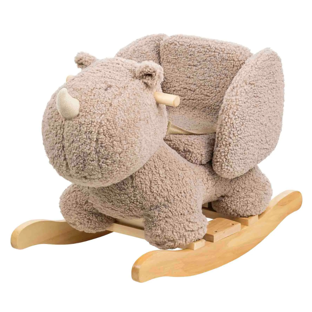 - Soft and cuddly rhino rocking toy in a timeless taupe design